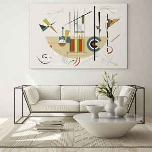 La peinture sur verre est faite sur un verre de 4 mm d'épaisseur. Les bords du verre ont une arête trapézoïdale mate. La tableau est sûr à l'utilisation et prêt à être accroché - il a des crochets en métal attachés à l'arrière du cadre et des entretoises en mousse permettant la régulation uniforme de la distance du tableau au mur.