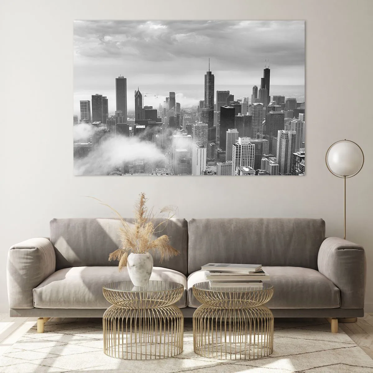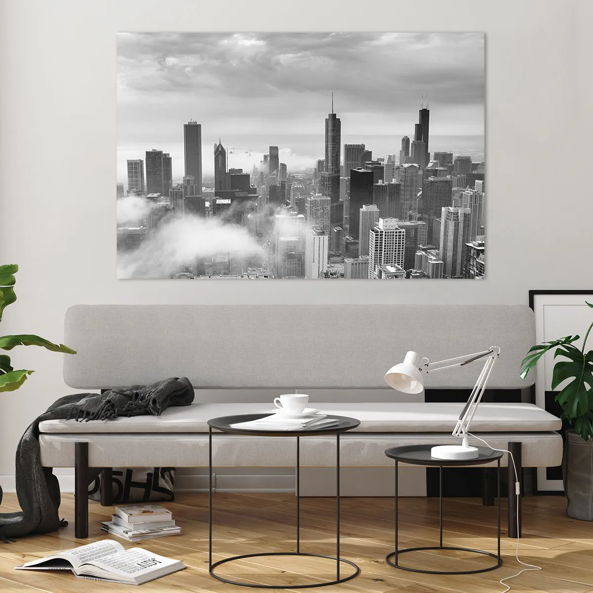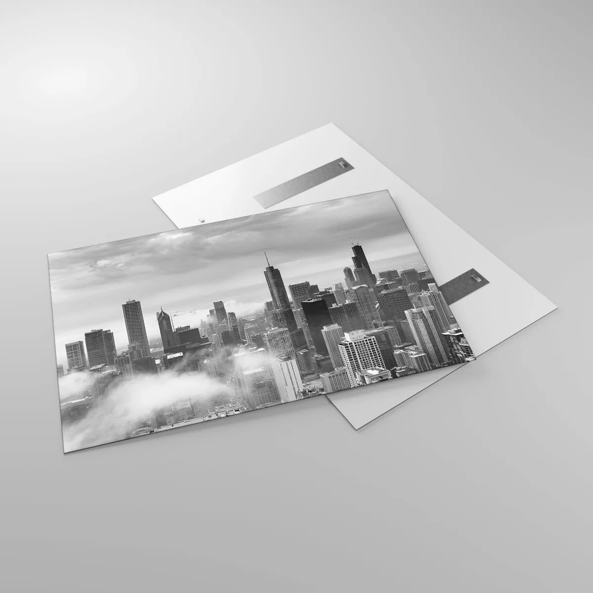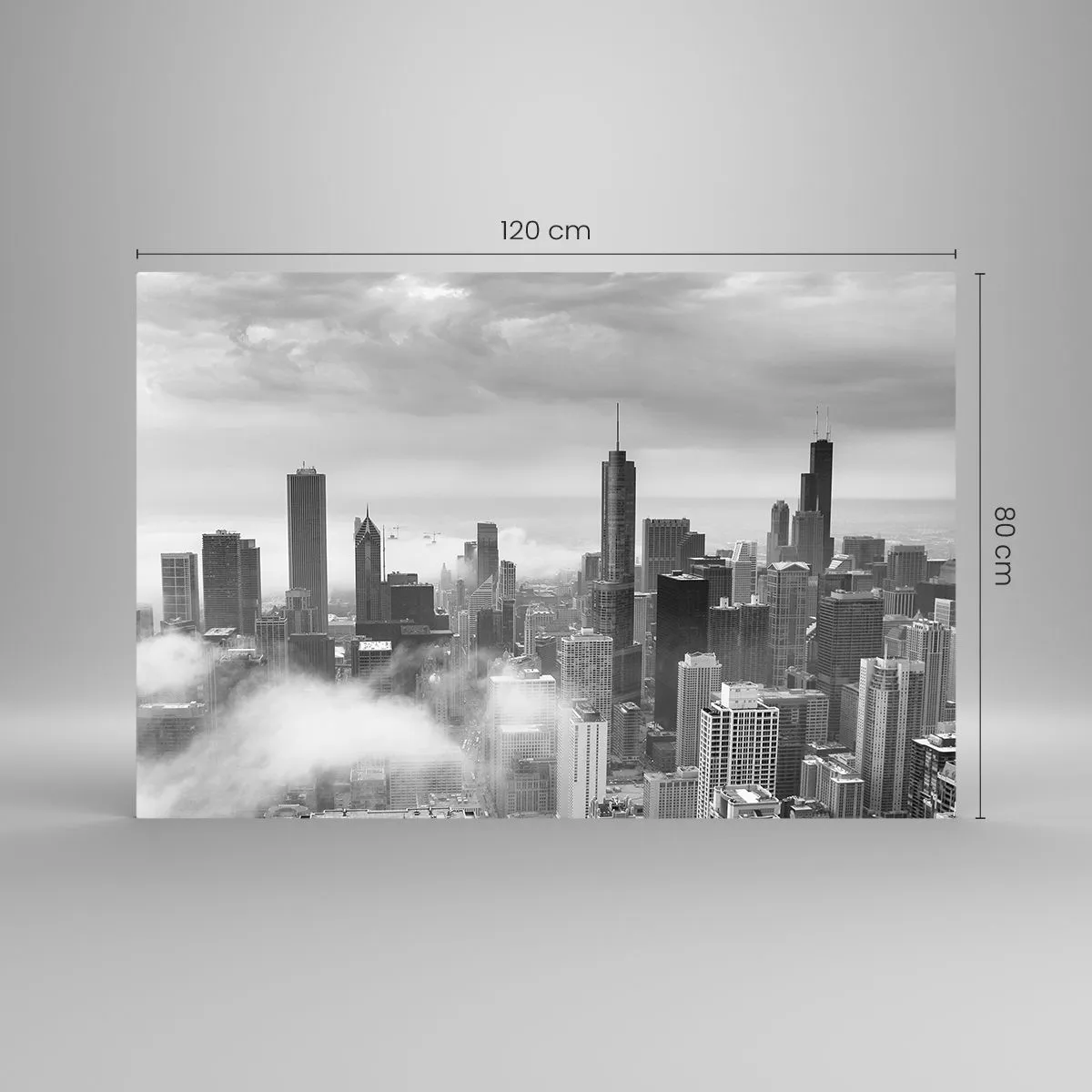 Impression sur verre - Image sur verre - Panorama de la ville avec des gratte-ciels en noir et blanc - 120x80cm - Paysage américain - Décoration murale moderne pour le salon et la chambre ARTTOR