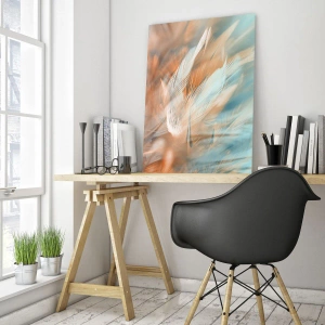 La peinture sur verre est faite sur un verre de 4 mm d'épaisseur. Les bords du verre ont une arête trapézoïdale mate. La tableau est sûr à l'utilisation et prêt à être accroché - il a des crochets en métal attachés à l'arrière du cadre et des entretoises en mousse permettant la régulation uniforme de la distance du tableau au mur.