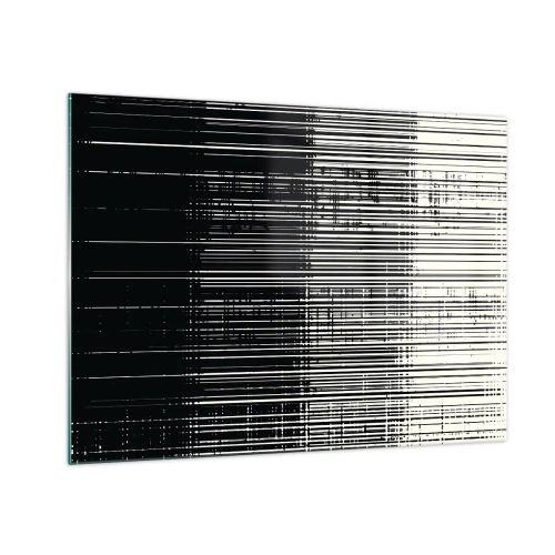 Impression sur verre - Image sur verre - Abstraction en noir et blanc avec des lignes horizontales créant un dégradé - 70x50cm - Ondes et vibrations - Décoration murale moderne pour le salon et la chambre ARTTOR