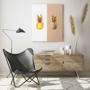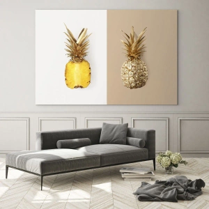 Impression sur verre - Image sur verre - Un ananas tranché et doré sur deux fonds contrastés - 100x70cm - Ananas pour nous - Décoration murale moderne pour le salon et la chambre ARTTOR