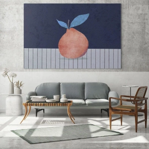 Impression sur verre - Image sur verre - Un fruit avec une forme abstraite sur fond de composition géométrique - 50x70cm - Convexité et plan - Décoration murale moderne pour le salon et la chambre ARTTOR