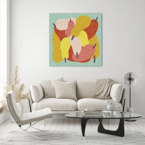 Décoration murale - Essayez le soleil d'été - Poires colorées au style graphique sur fond turquoise
