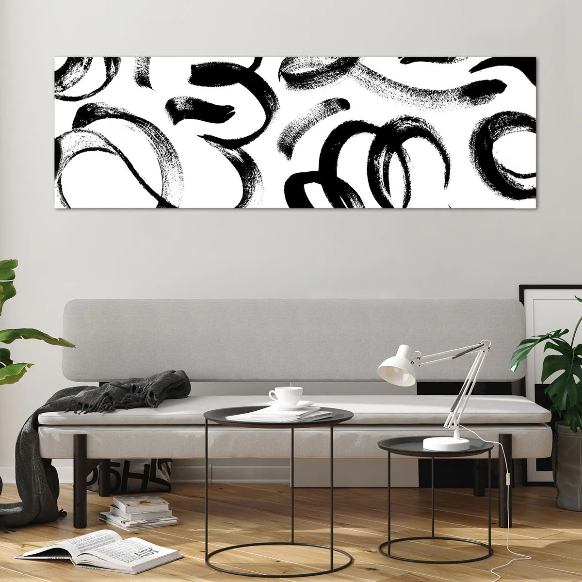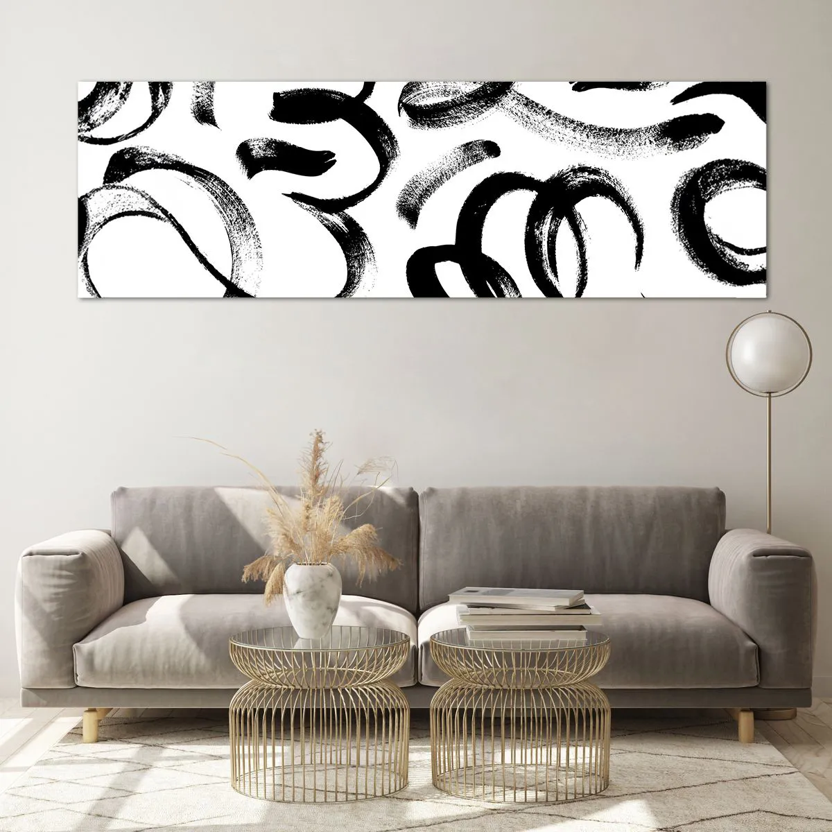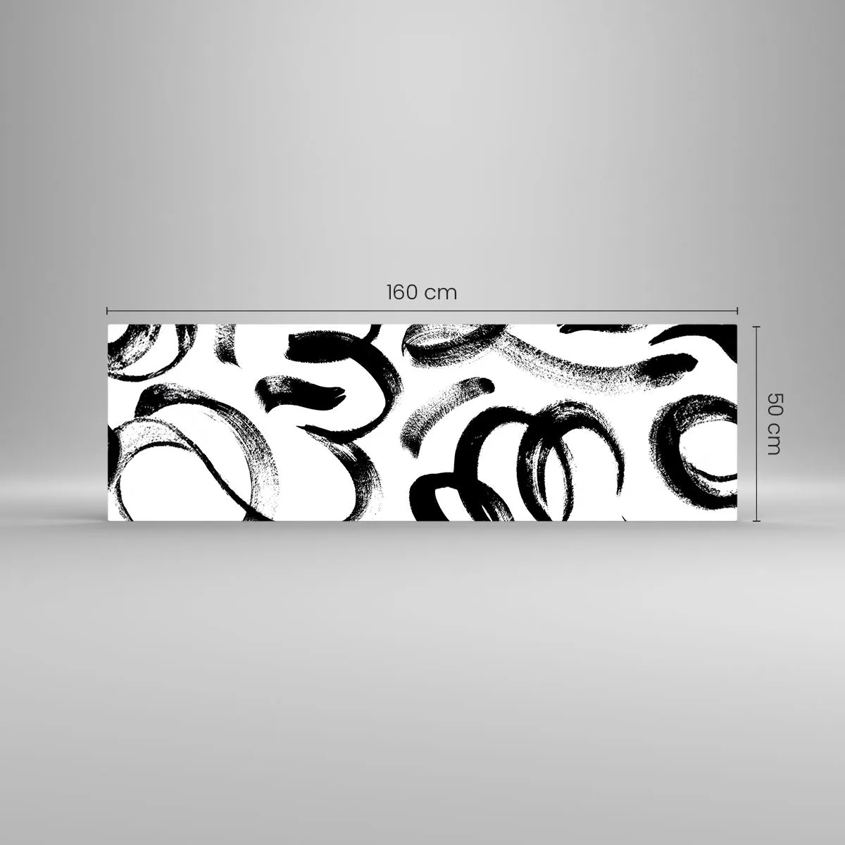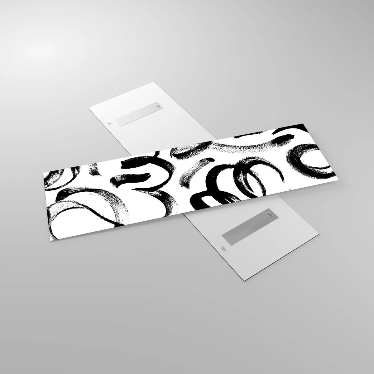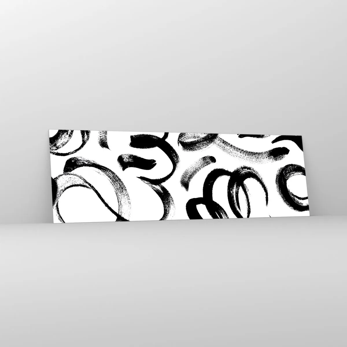 Impression sur verre - Image sur verre - Coups de pinceau abstraits noirs sur fond blanc - 160x50cm - Noir sur blanc - Décoration murale moderne pour le salon et la chambre ARTTOR