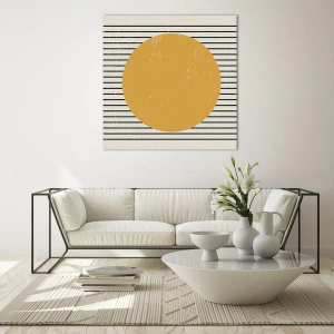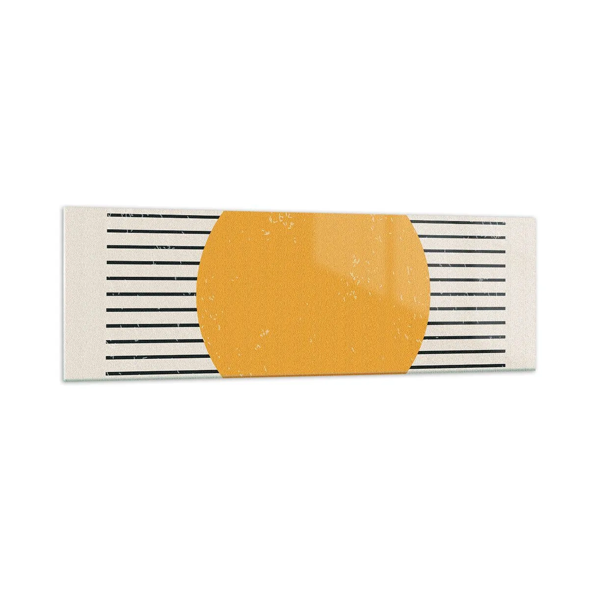 Impression sur verre - Image sur verre - Un cercle jaune sur un fond de lignes horizontales noires et blanches - 160x50cm - Le pouvoir de la simplicité - Décoration murale moderne pour le salon et la chambre ARTTOR