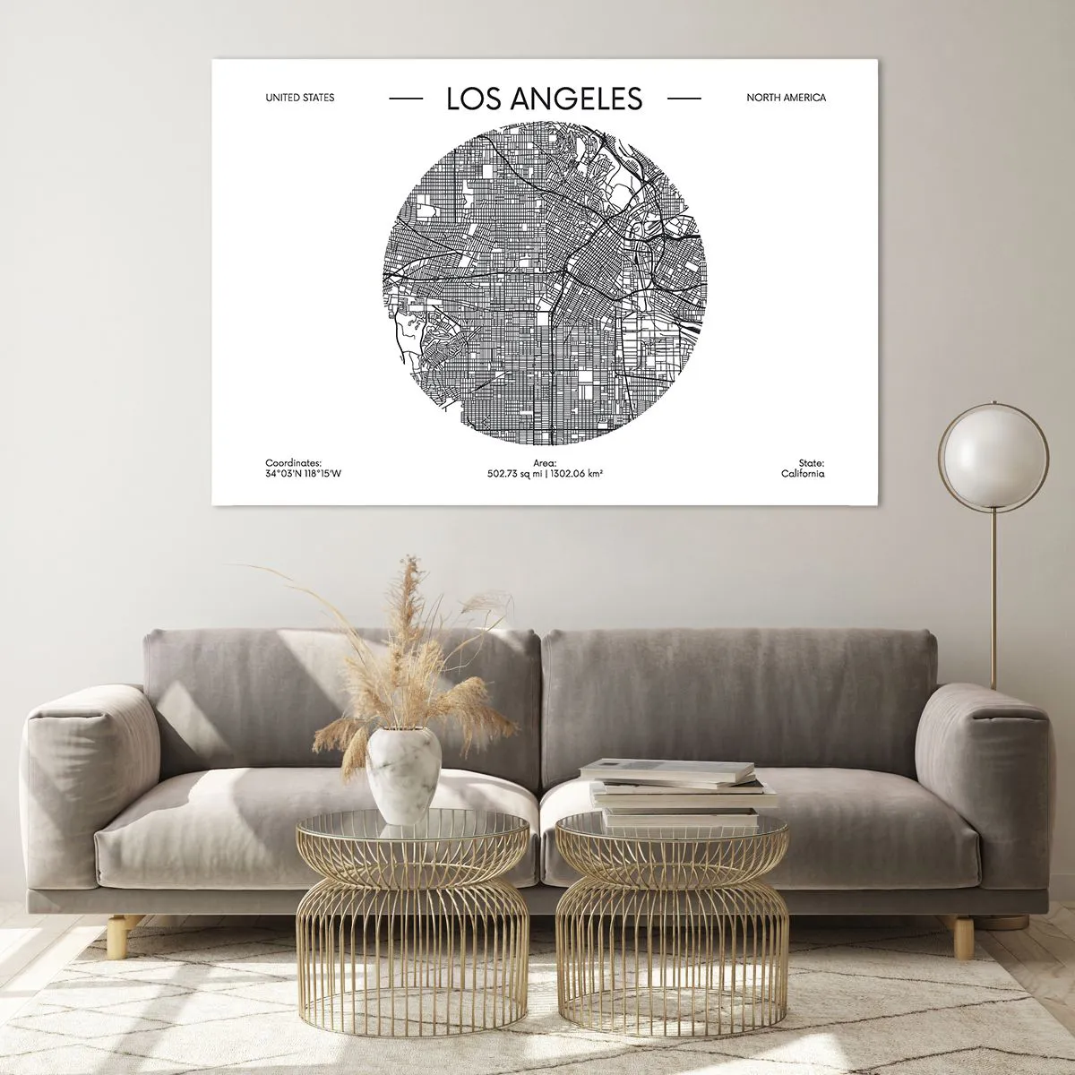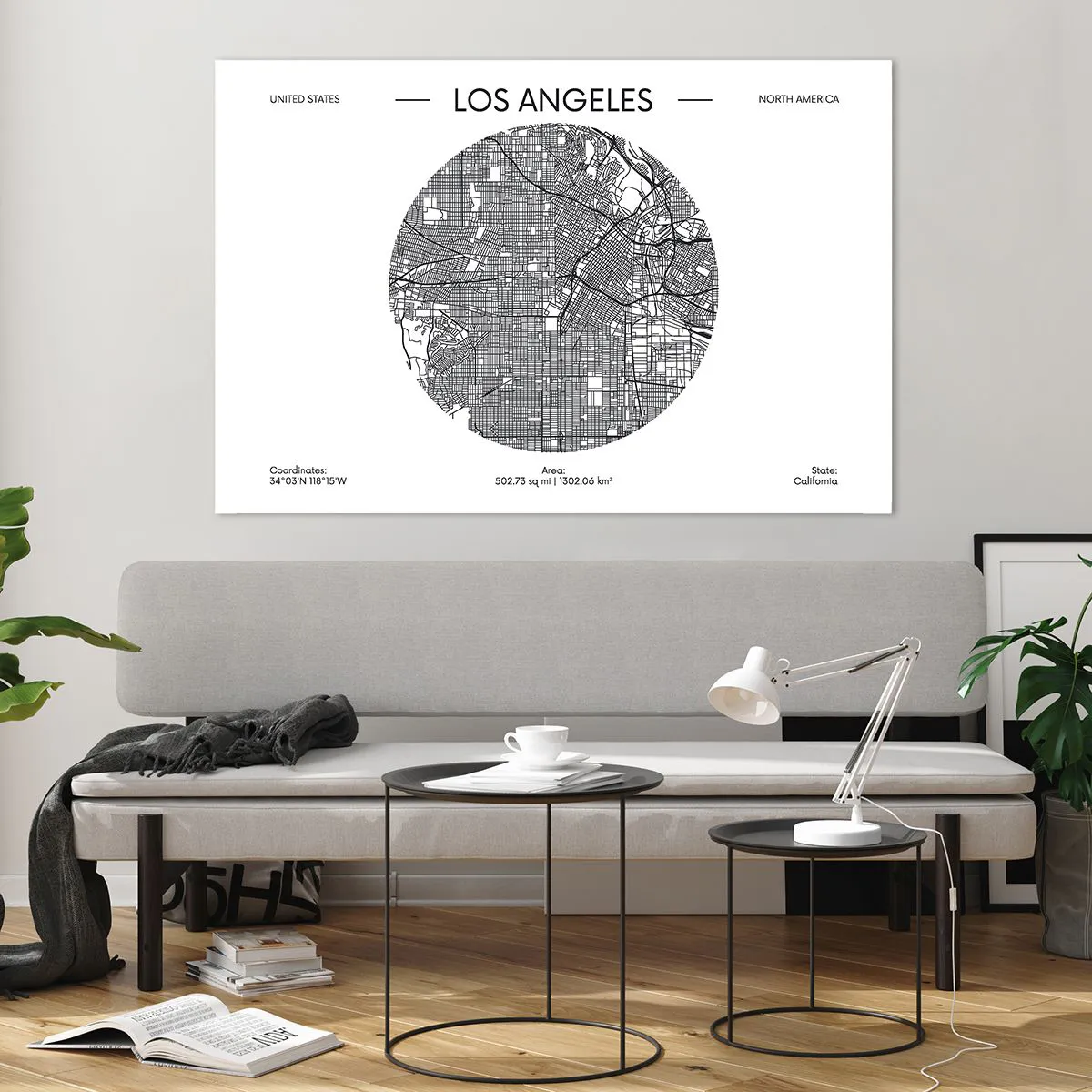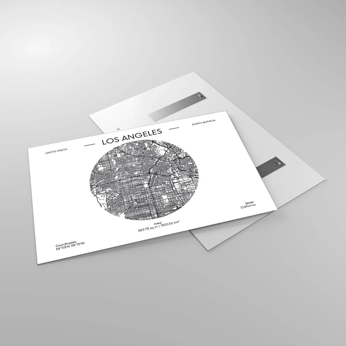 Impression sur verre - Image sur verre - Une carte minimaliste en noir et blanc de Los Angeles. - 120x80cm - Anatomie de Los Angeles - Décoration murale moderne pour le salon et la chambre ARTTOR