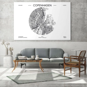 Impression sur verre - Image sur verre - Une carte de Copenhague dans un style minimaliste en noir et blanc. - 70x100cm - Anatomie de Copenhague - Décoration murale moderne pour le salon et la chambre ARTTOR