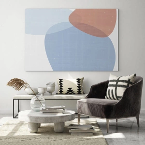 Impression sur verre - Image sur verre - Une composition abstraite dans des tons pastel de bleu et de rose avec des formes organiques. - 80x120cm - Relations pastel - Décoration murale moderne pour le salon et la chambre ARTTOR