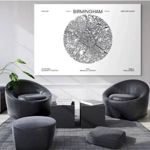 Décoration murale - Anatomie de Birmingham - Carte de Birmingham en noir et blanc dans un style graphique moderne