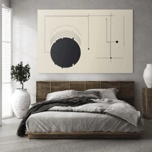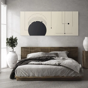 Impression sur verre - Image sur verre - Lignes géométriques noires et un cercle sur fond beige - 80x120cm - Une composition flexible et dynamique - Décoration murale moderne pour le salon et la chambre ARTTOR