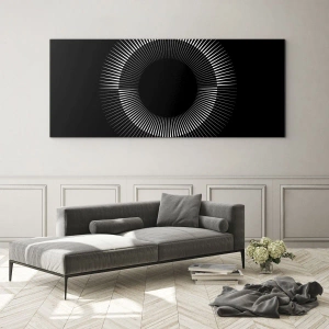 Impression sur verre - Image sur verre - Rayons blancs formant un cercle sur fond noir - 50x70cm - Soleil noir - Décoration murale moderne pour le salon et la chambre ARTTOR