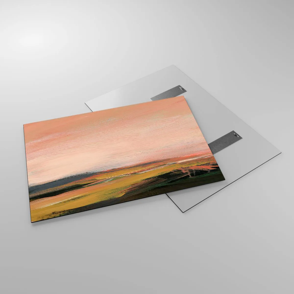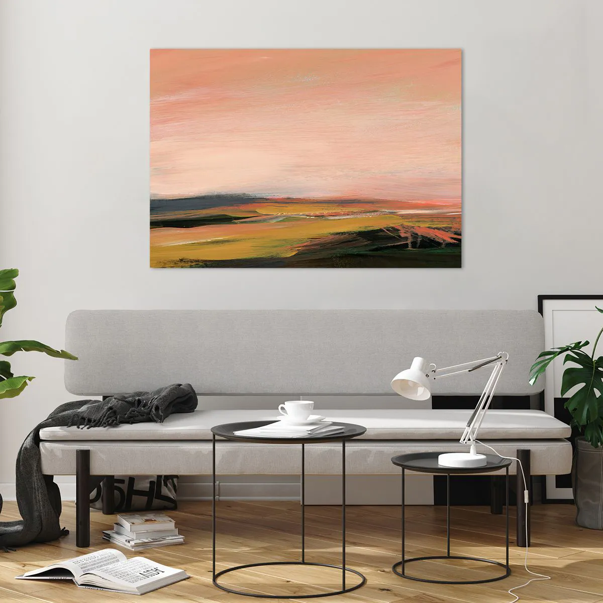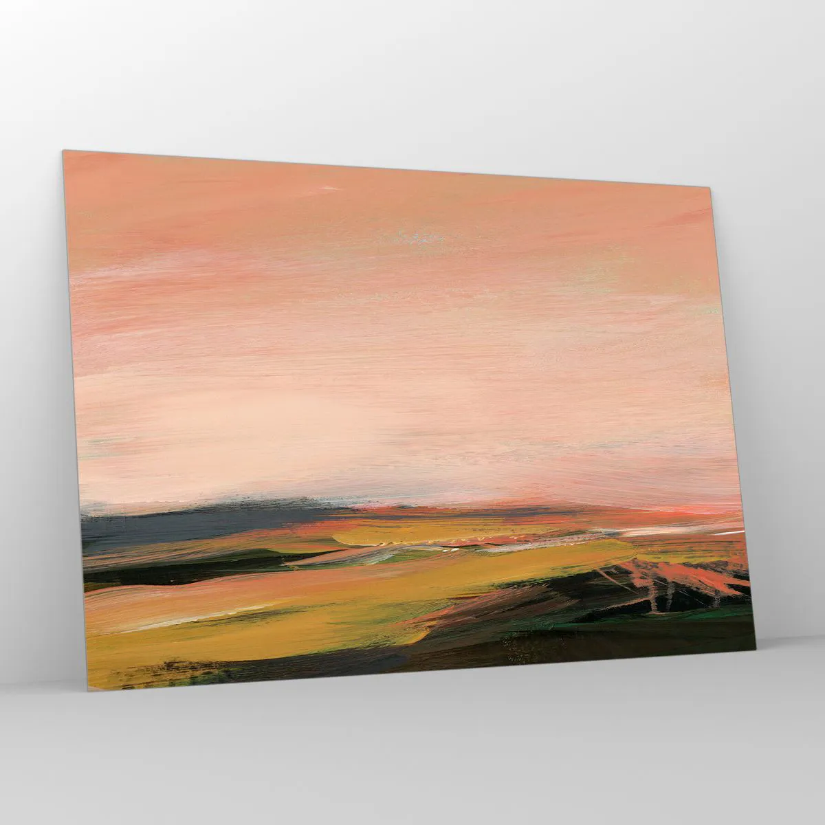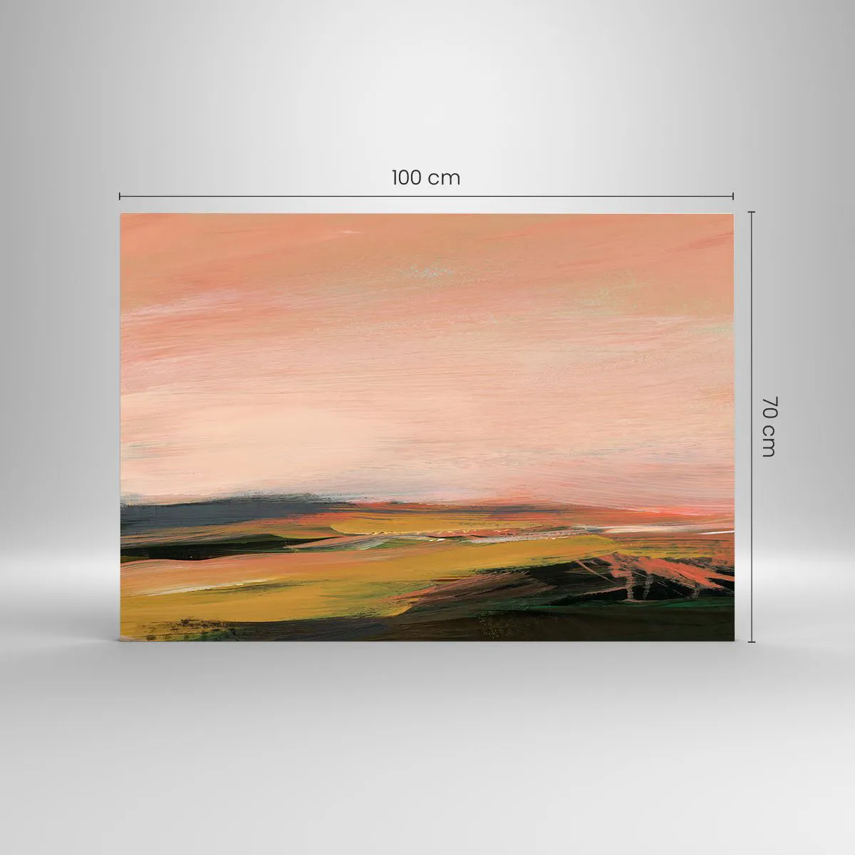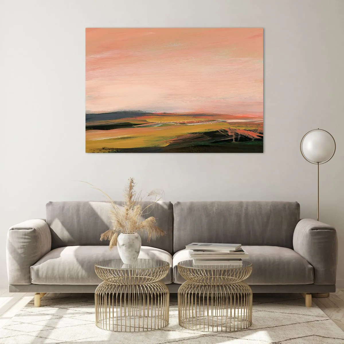 Impression sur verre - Image sur verre - Un paysage abstrait dans des tons de rose et de vert cassé. - 100x70cm - Dans les tons de roses - Décoration murale moderne pour le salon et la chambre ARTTOR