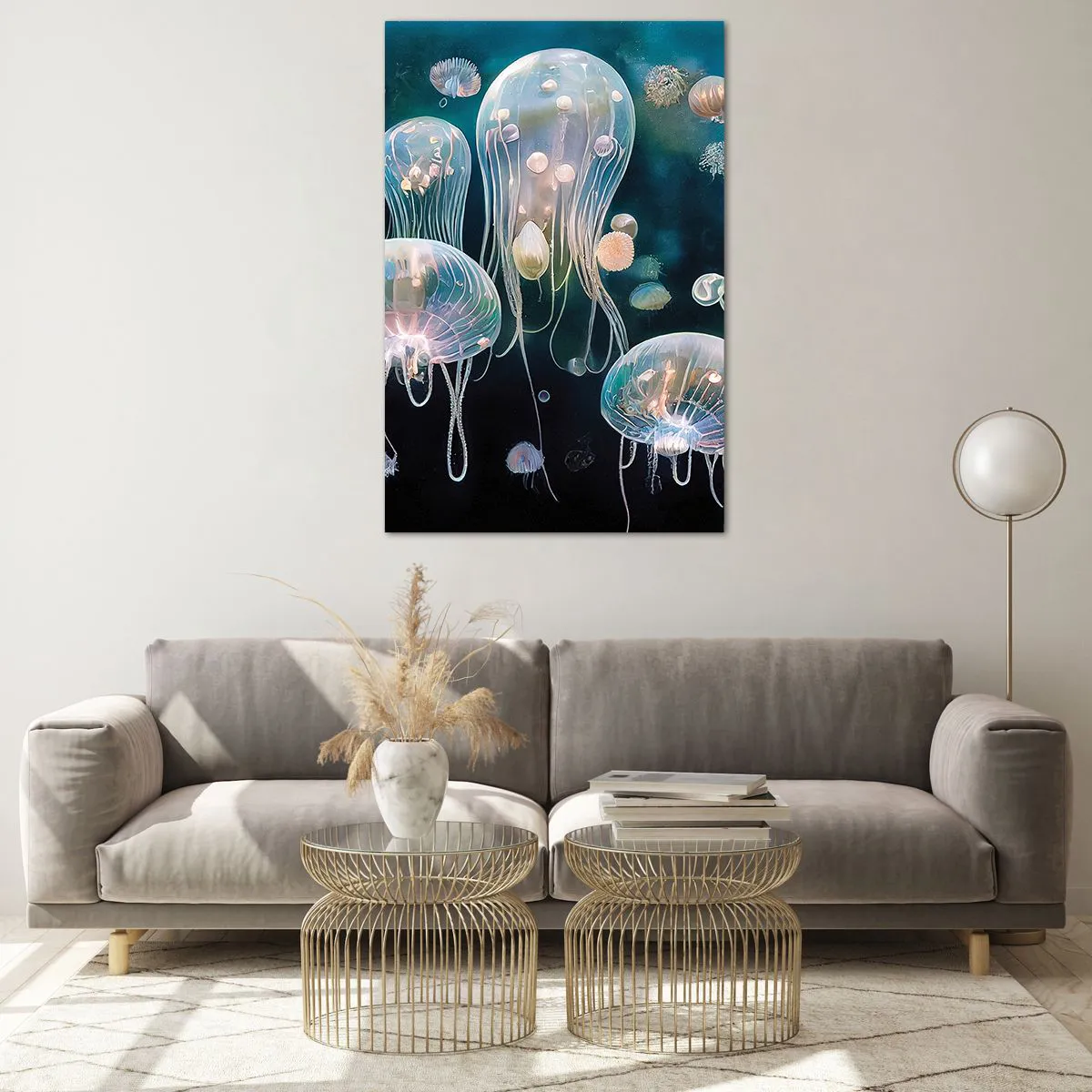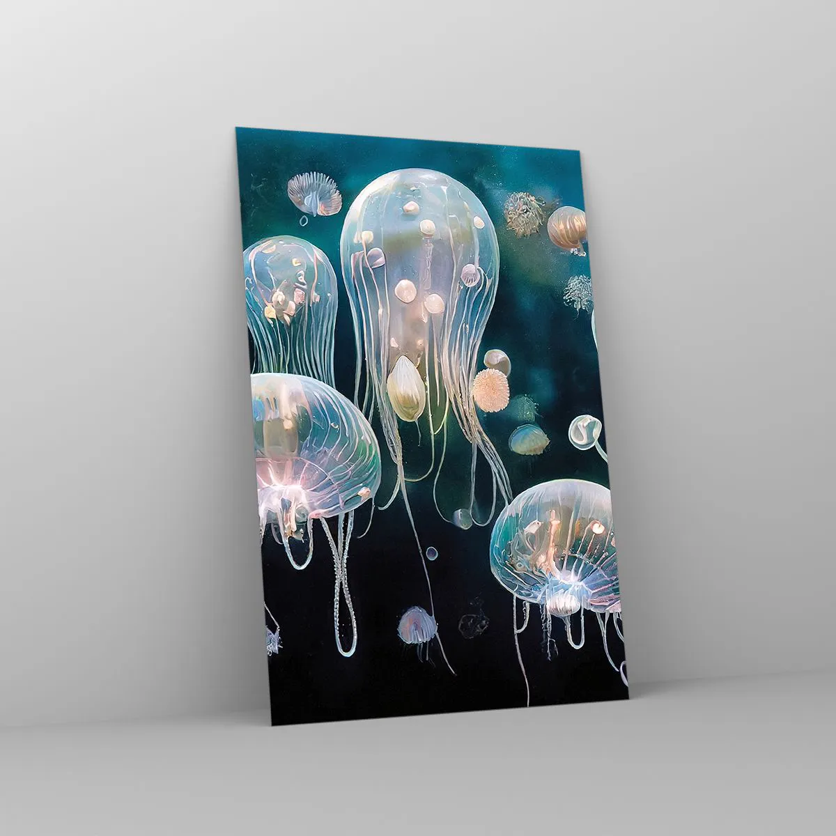 Impression sur verre - Image sur verre - Méduses délicates dans le monde sous-marin - 80x120cm - Ballon sous-marin - Décoration murale moderne pour le salon et la chambre ARTTOR