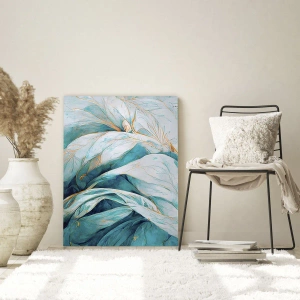 Impression sur verre - Image sur verre - Abstraction bleue avec un motif doré - 60x60 cm