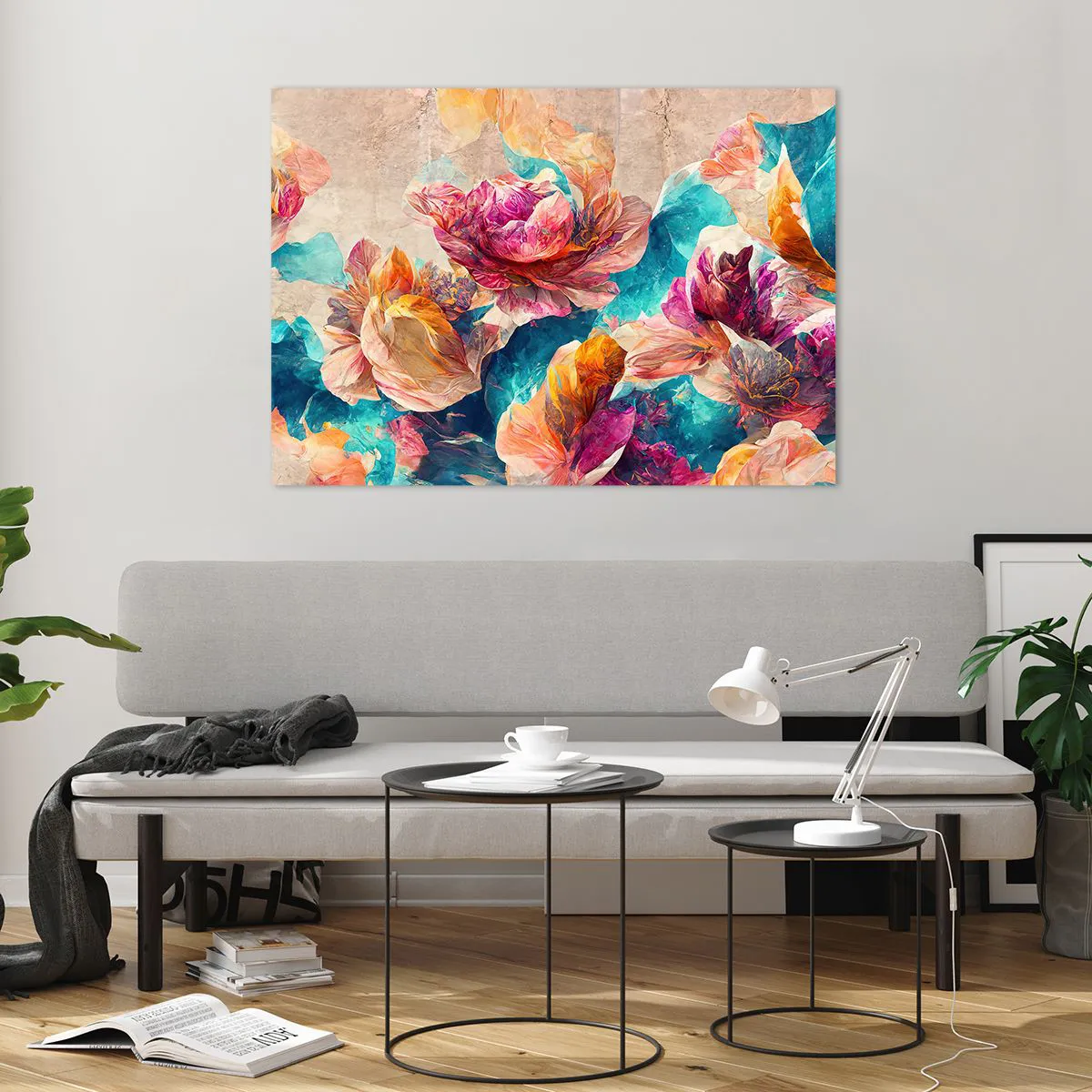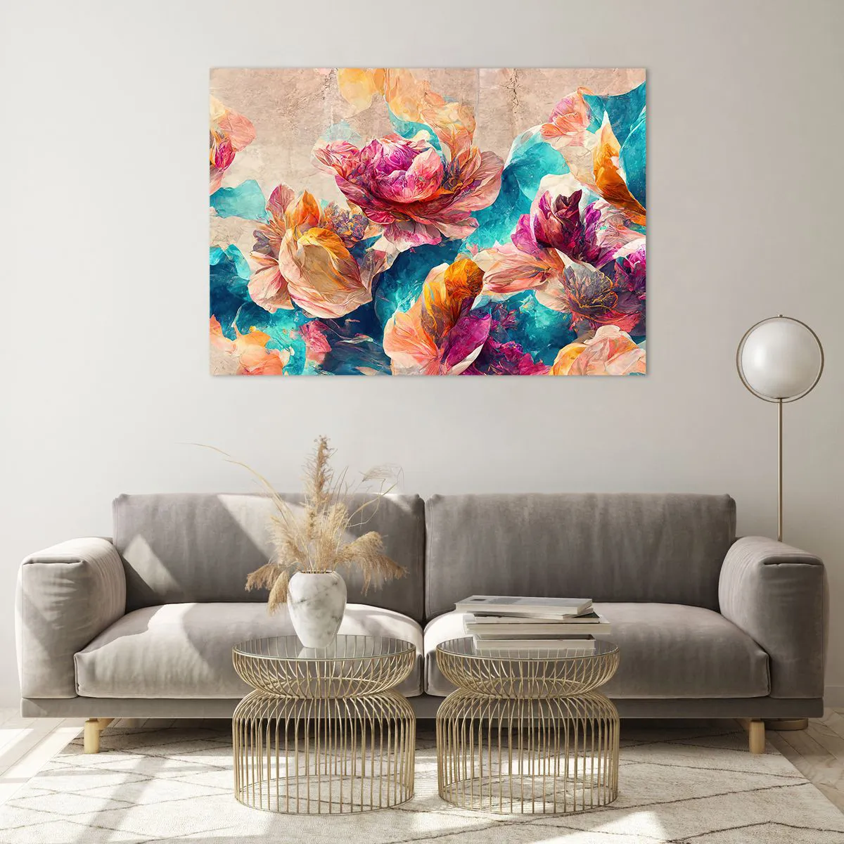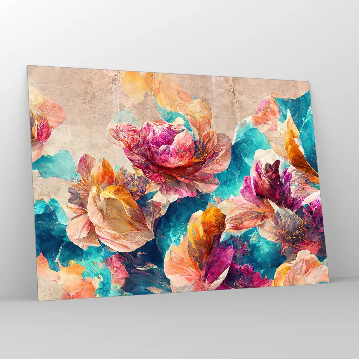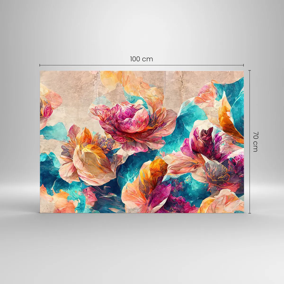 Impression sur verre - Image sur verre - Fleurs colorées sur fond aquarelle - 100x70cm - Splendeur colorée du bouquet - Décoration murale moderne pour le salon et la chambre ARTTOR