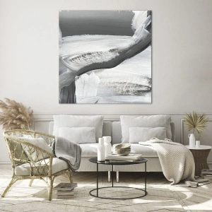 Impression sur verre - Image sur verre - Abstraction en noir et blanc avec des coups de pinceau dynamiques. - 70x50cm - Un geste décisif - Décoration murale moderne pour le salon et la chambre ARTTOR