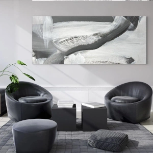 - Une composition dynamique en noir et blanc, réalisée à partir de coups de pinceau expressifs. Le style abstrait du tableau souligne le caractère moderne et minimaliste de l'intérieur.