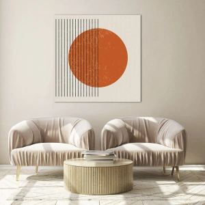 Impression sur verre - Image sur verre - Composition géométrique avec cercle et lignes orange - 100x70cm - Toujours le soleil - Décoration murale moderne pour le salon et la chambre ARTTOR