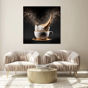 La peinture sur verre est faite sur un verre de 4 mm d'épaisseur. Les bords du verre ont une arête trapézoïdale mate. La tableau est sûr à l'utilisation et prêt à être accroché - il a des crochets en métal attachés à l'arrière du cadre et des entretoises en mousse permettant la régulation uniforme de la distance du tableau au mur.