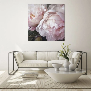 La peinture sur verre est faite sur un verre de 4 mm d'épaisseur. Les bords du verre ont une arête trapézoïdale mate. La tableau est sûr à l'utilisation et prêt à être accroché - il a des crochets en métal attachés à l'arrière du cadre et des entretoises en mousse permettant la régulation uniforme de la distance du tableau au mur.