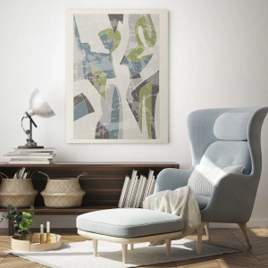Impression sur verre - Image sur verre - Composition géométrique en vert et gris - 50x70cm - Composition derrière la vitre - Décoration murale moderne pour le salon et la chambre ARTTOR