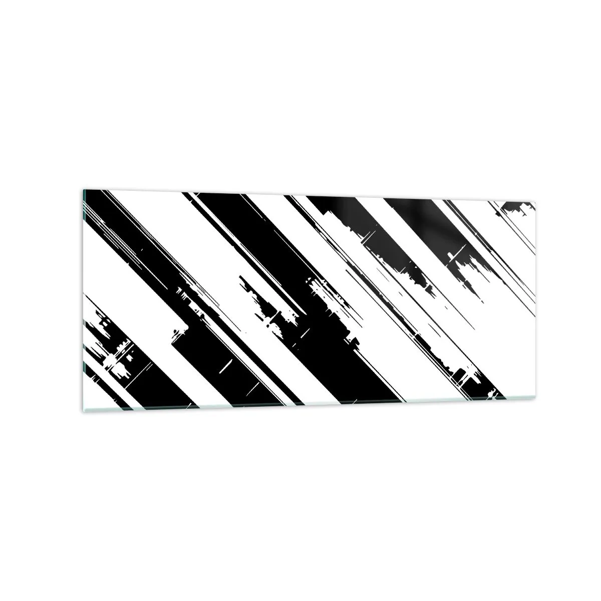 Impression sur verre - Image sur verre - Lignes noires et blanches et motifs géométriques dans un style moderne - 120x50cm - Une composition intense et dynamique - Décoration murale moderne pour le salon et la chambre ARTTOR