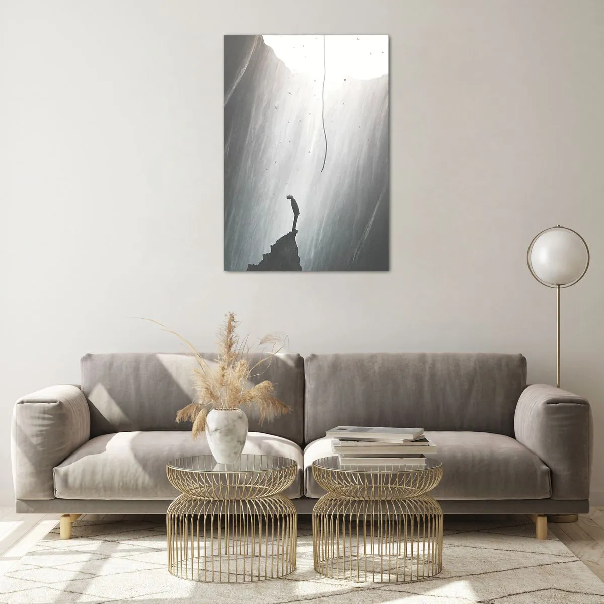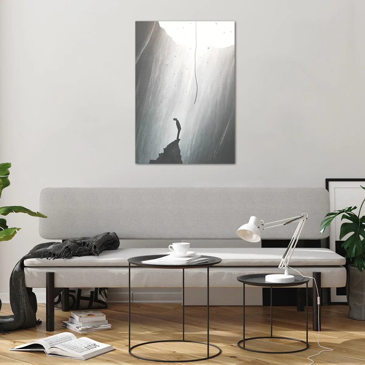 Impression sur verre - Image sur verre - Silhouette d'un homme sur le sol d'une grotte avec vue sur la lumière - 70x100cm - Il y a toujours une issue - Décoration murale moderne pour le salon et la chambre ARTTOR