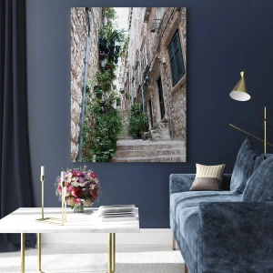 La peinture sur verre est faite sur un verre de 4 mm d'épaisseur. Les bords du verre ont une arête trapézoïdale mate. La tableau est sûr à l'utilisation et prêt à être accroché - il a des crochets en métal attachés à l'arrière du cadre et des entretoises en mousse permettant la régulation uniforme de la distance du tableau au mur.