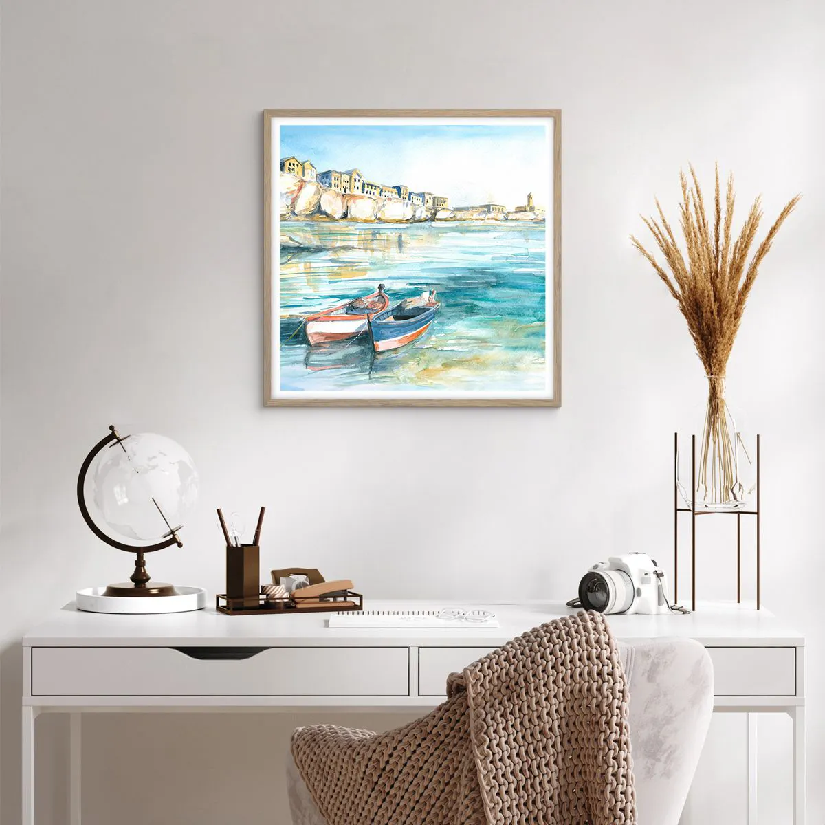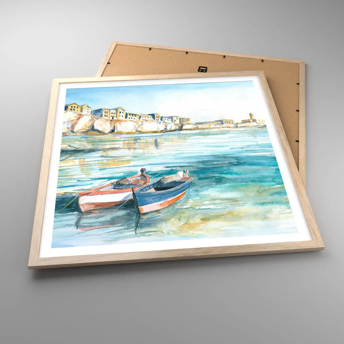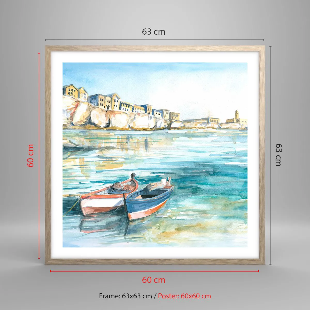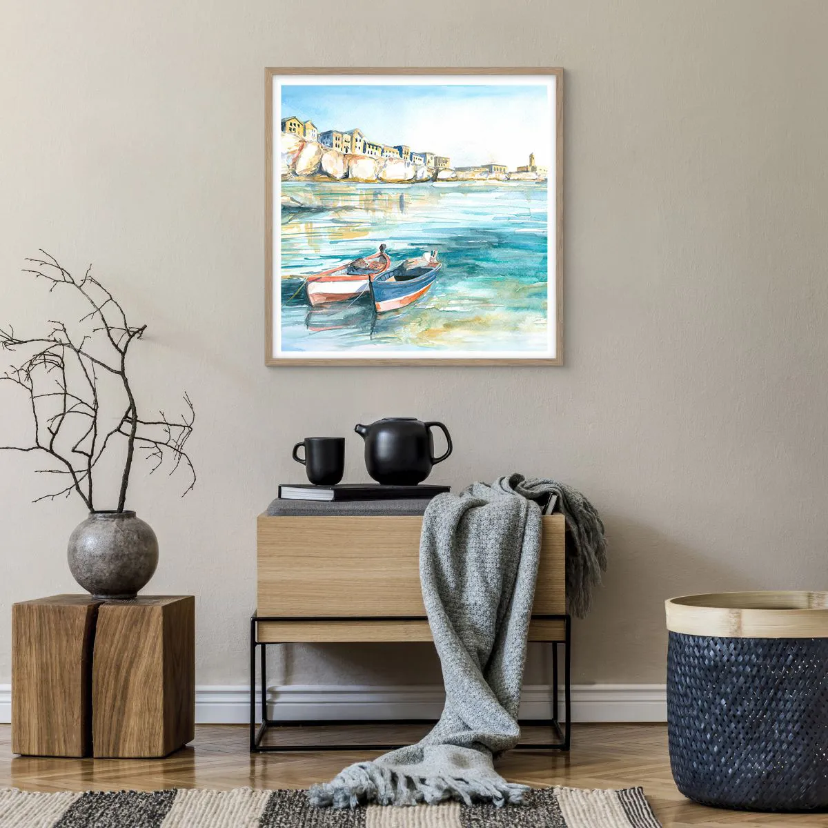 Affiche dans un chêne clair - Poster - Paysage dans l'azur - 60x60 cm