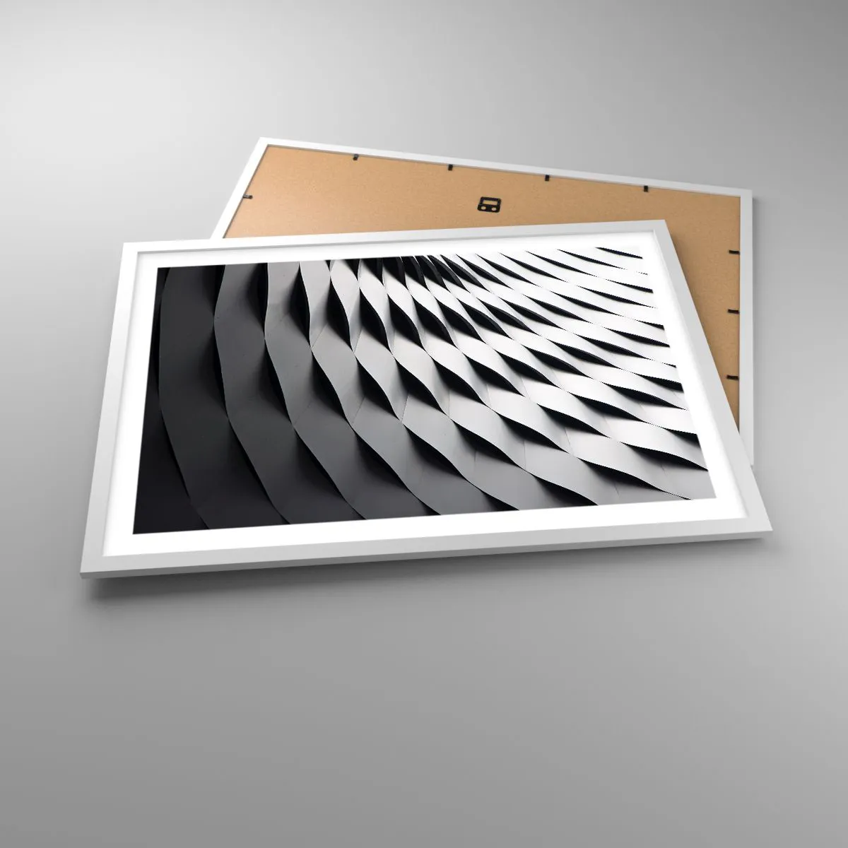 Chaque cadre est doté de deux cintres fixés au cadre afin qu'il soit prêt à être accroché au mur. Le cadre peut être accroché aussi bien verticalement qu'horizontalement