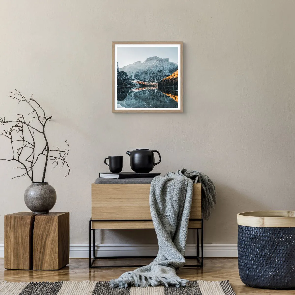 Affiche dans un chêne clair - Poster - Reflet de paysage - 40x40 cm
