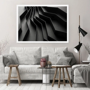 Affiche - Poster - Abstraction en noir et blanc avec des structures géométriques - 100x70cm - Ordre spatial - Décoration murale moderne pour le salon et la chambre ARTTOR