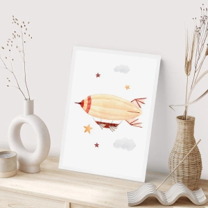 Affiche - Poster - Un dirigeable peint à la main sur fond d'étoiles - 100x70cm - Dirigeable - Décoration murale moderne pour le salon et la chambre ARTTOR