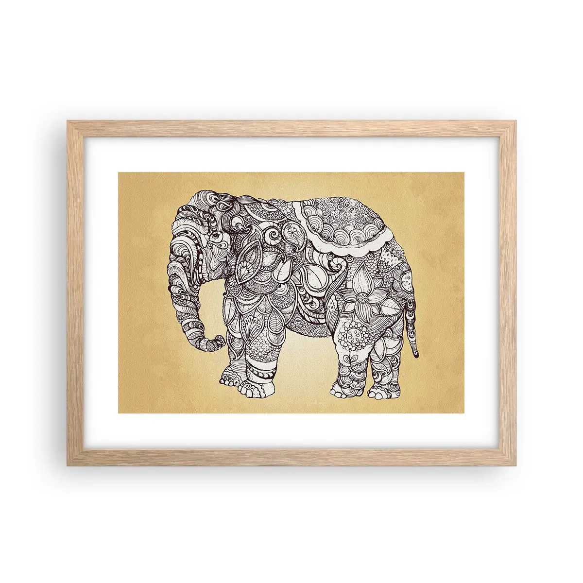 Affiche dans un chêne clair - Poster - L'éléphant s'est apprêté - 40x30 cm