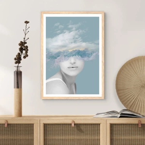 Affiche dans un chêne clair - Poster - La tête dans les nuages - 100x70 cm