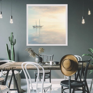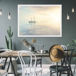 Affiche - Poster - Un bateau sur une mer calme dans une douce lumière - 100x70cm - Dans une mer de silence - Décoration murale moderne pour le salon et la chambre ARTTOR