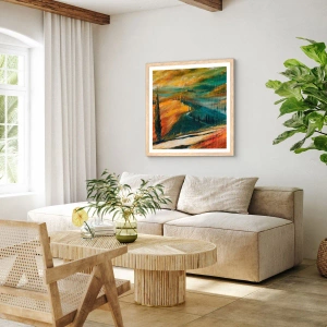 Affiche dans un chêne clair - Poster - paysage toscan - 50x50 cm