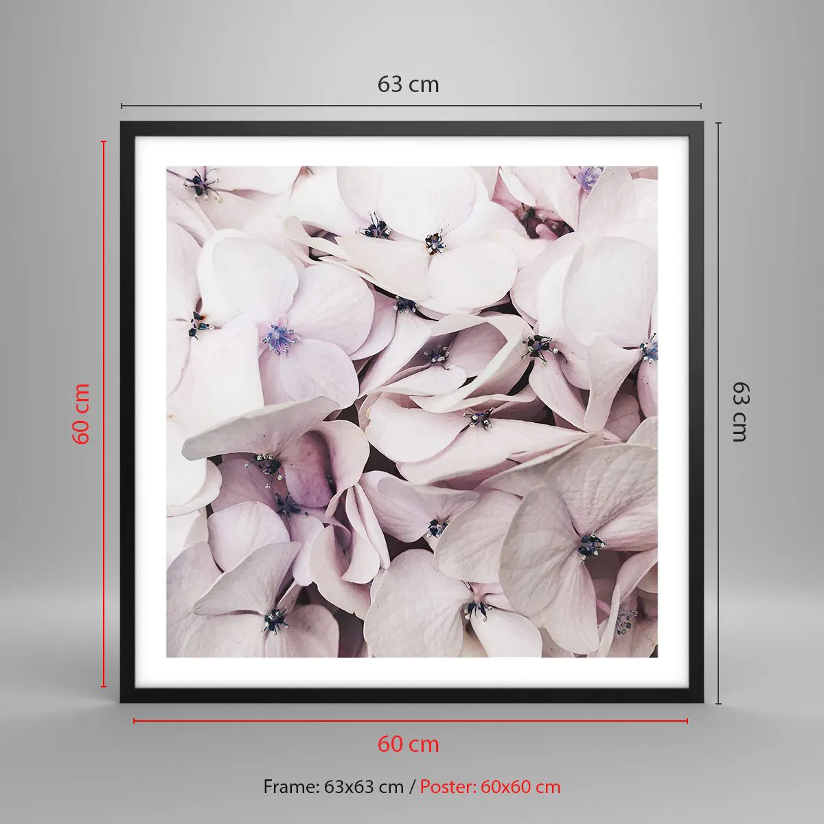 Affiche dans un cadre noir - Poster - Dans un flot de fleurs - 60x60 cm