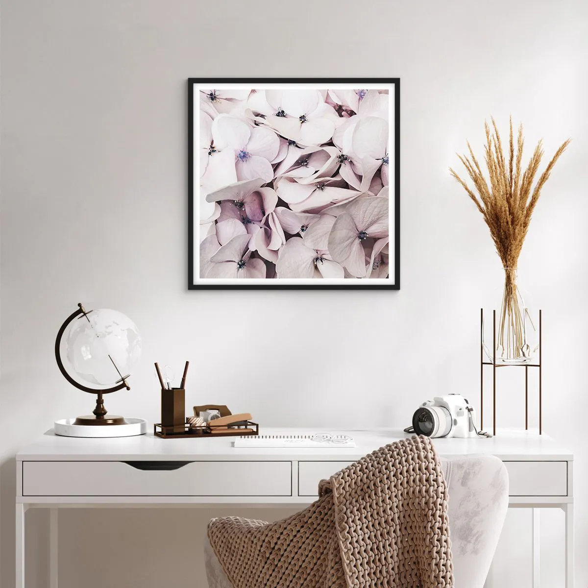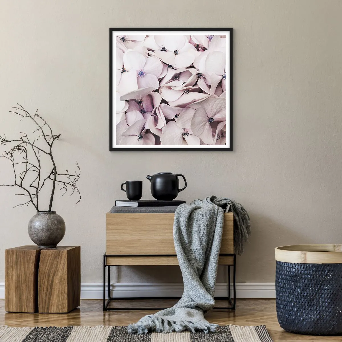 • Fleurs, subtiles, hortensias, Botanique, Fleurs, Pastel, Pour le bureau, Pour le bureau, Pour la salle à manger, Pour la salle de bain, Pour le hall, Pour le salon, Pour la chambre, Blanc, Rose, Carré