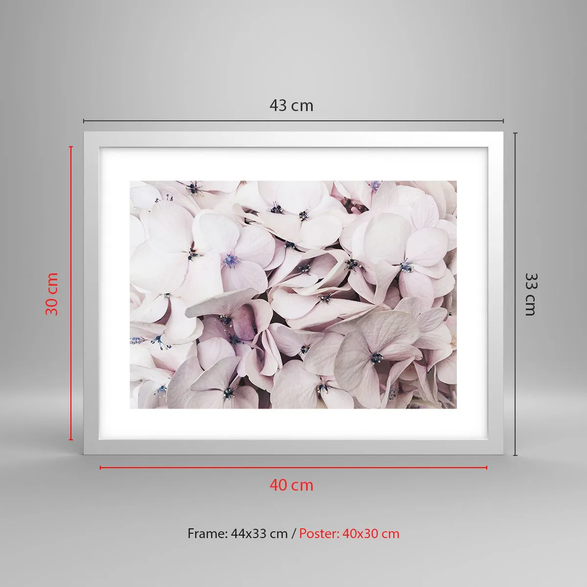 Affiche dans un cadre blanc - Poster - Dans un flot de fleurs - 40x30 cm