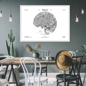 Affiche - Poster - Une carte d'Oslo dans un style minimaliste en noir et blanc. - 100x70cm - Anatomie d’Oslo - Décoration murale moderne pour le salon et la chambre ARTTOR