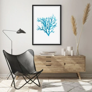 Affiche dans un cadre noir - Poster - Corail bleu en style aquarelle sur fond blanc - 50x70cm - Filigrane nautique - Décoration murale moderne pour le salon et la chambre ARTTOR