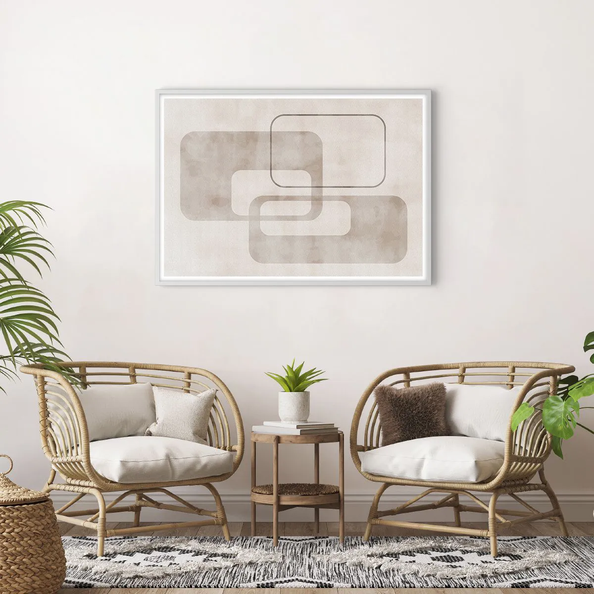 Affiche dans un cadre blanc - Poster - Fugue géométrique - 100x70 cm