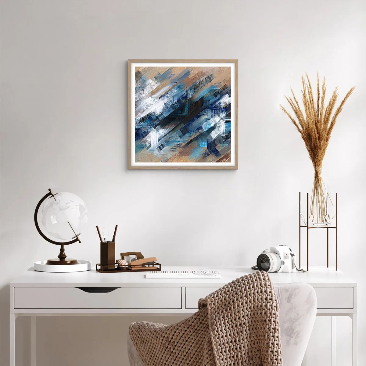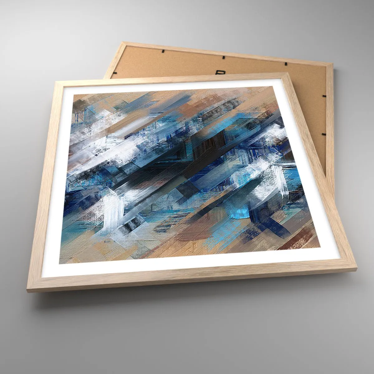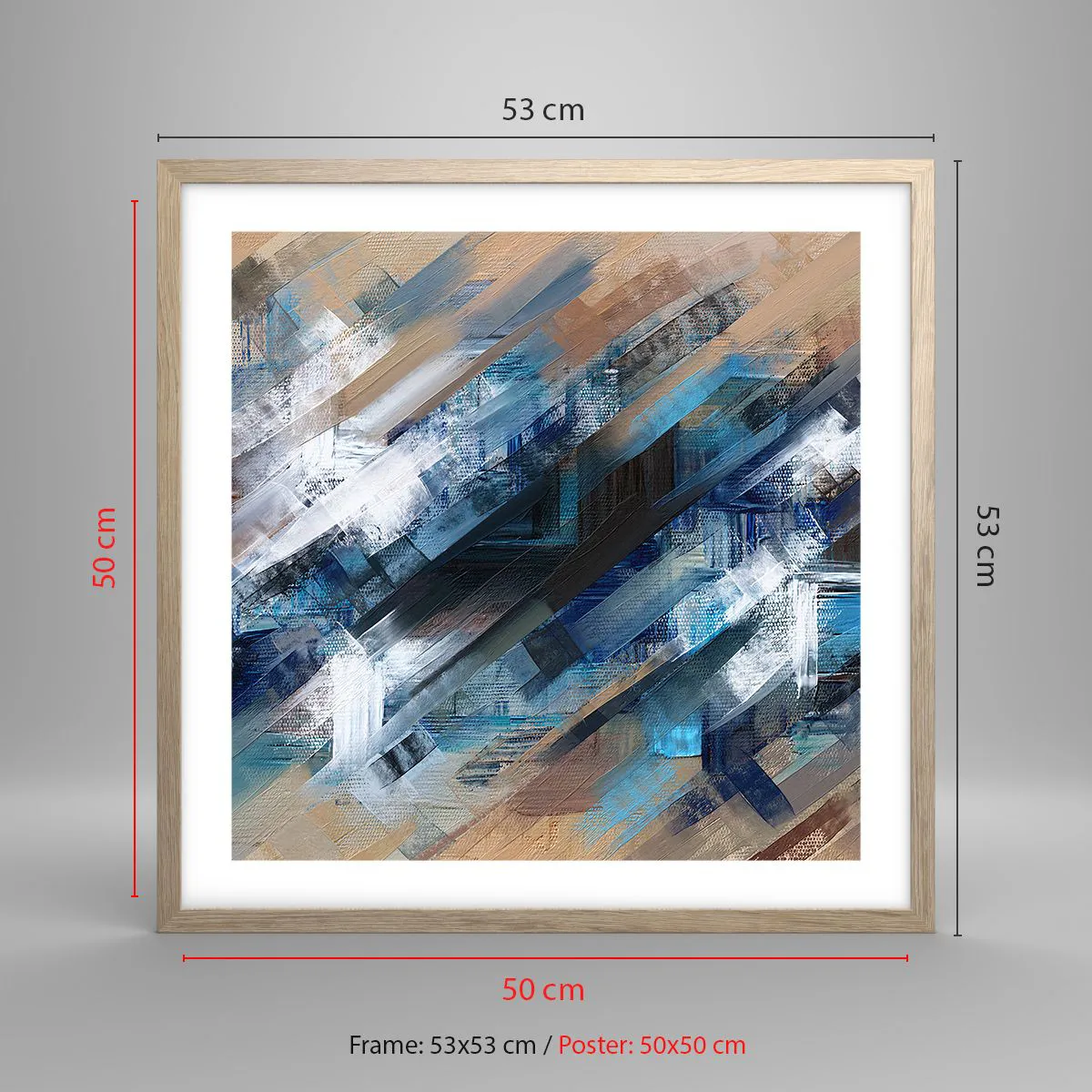 Affiche dans un chêne clair - Poster - Diagonale de bleus - 50x50 cm