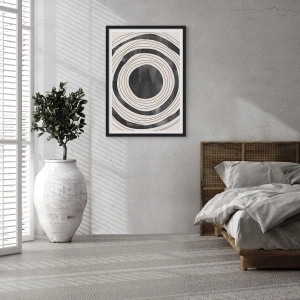 - Cette affiche moderne représente des cercles concentriques abstraits dans des tons de noir et de blanc. Sa forme minimaliste et sa composition géométrique en font un choix idéal pour les intérieurs modernes.