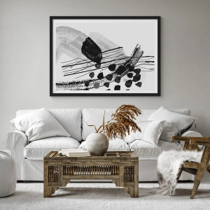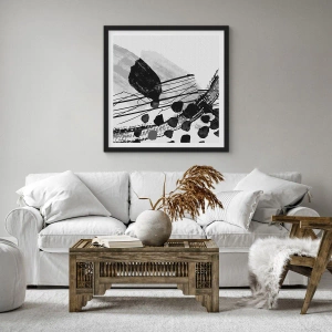 Affiche dans un cadre noir - Poster - Abstraction organique noir et blanc - 40x40 cm