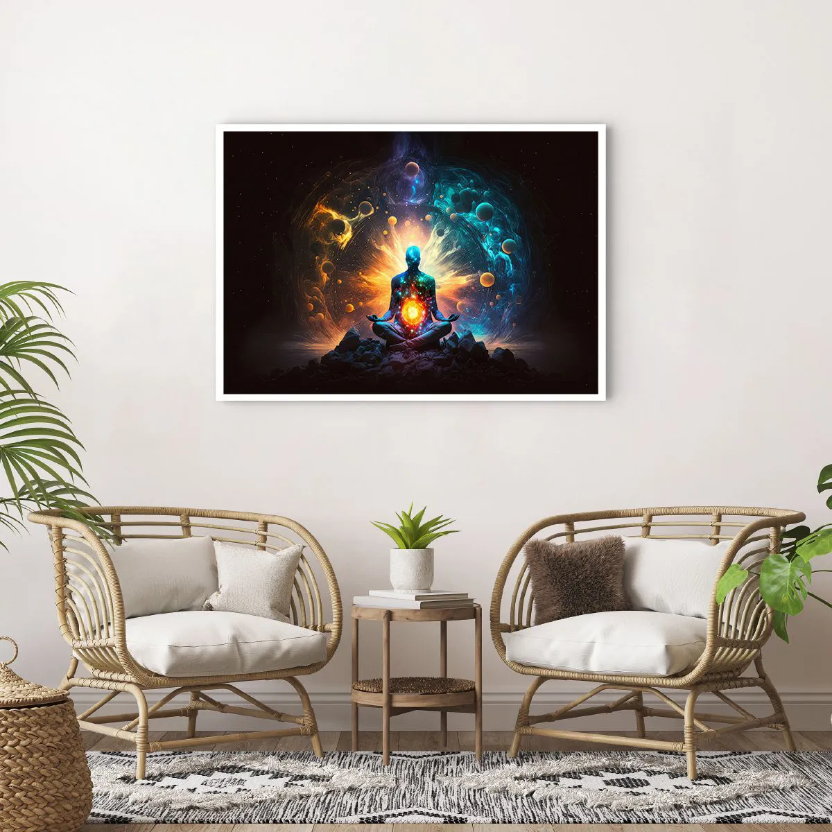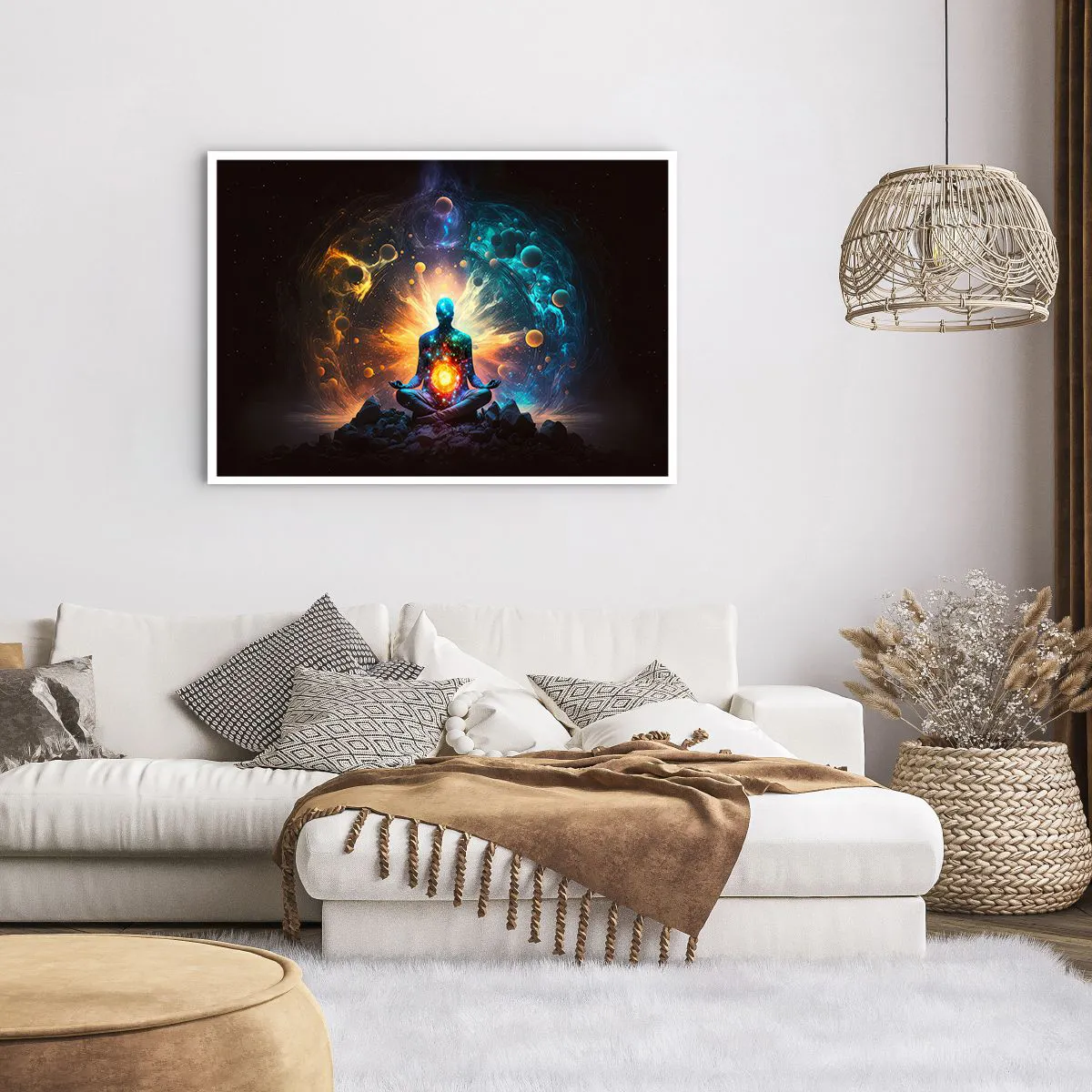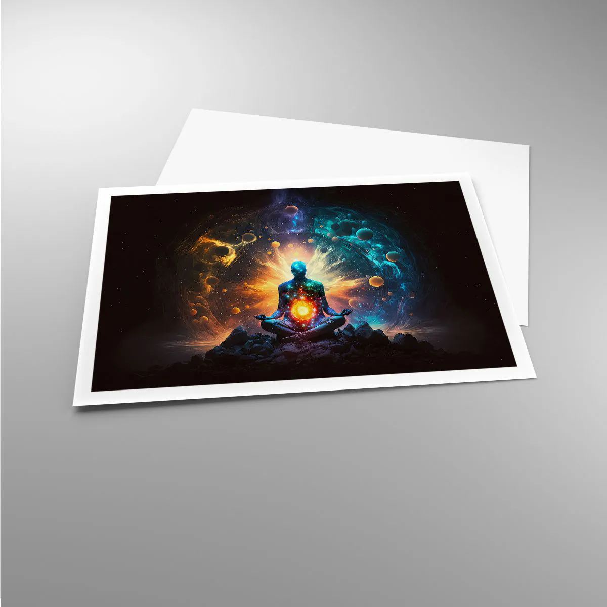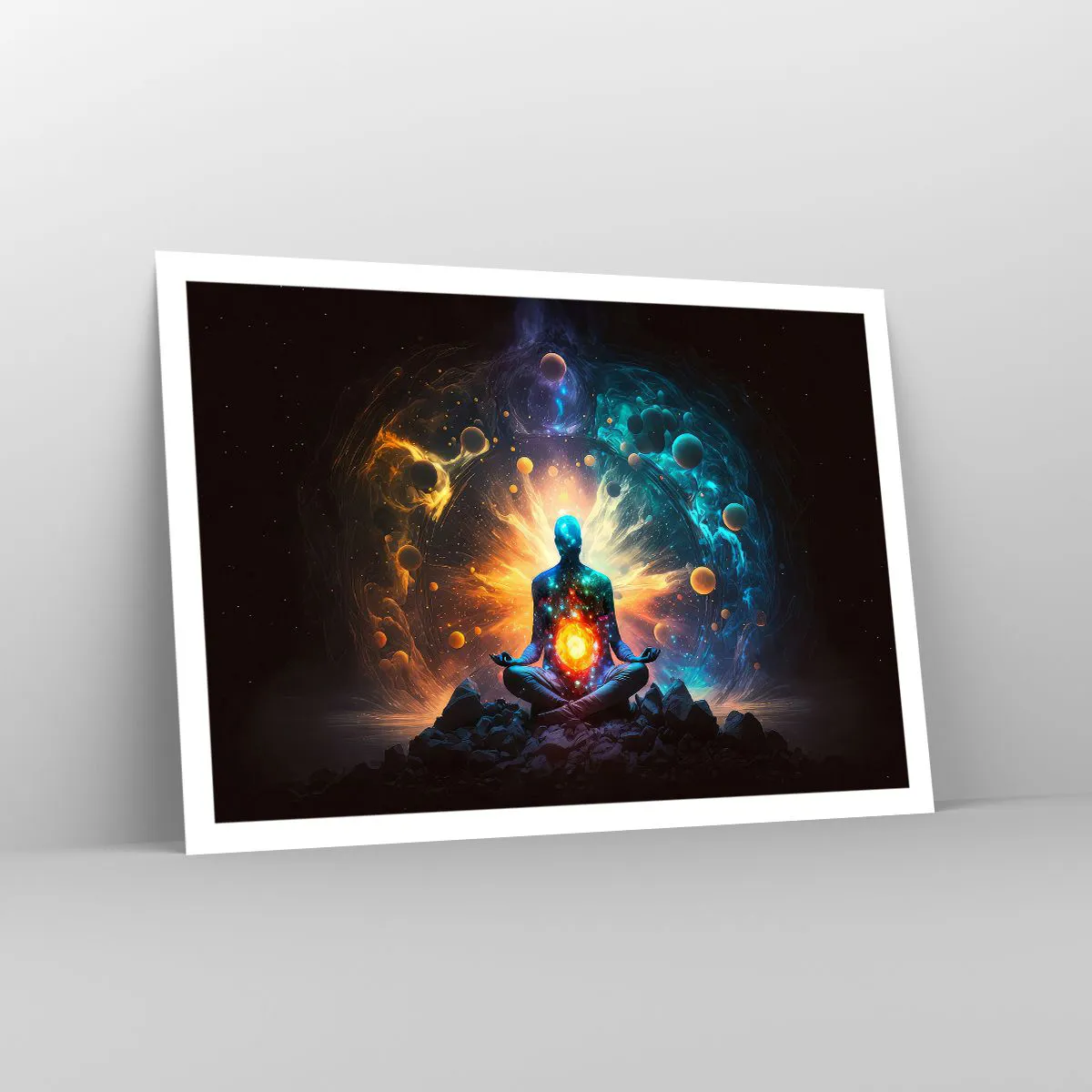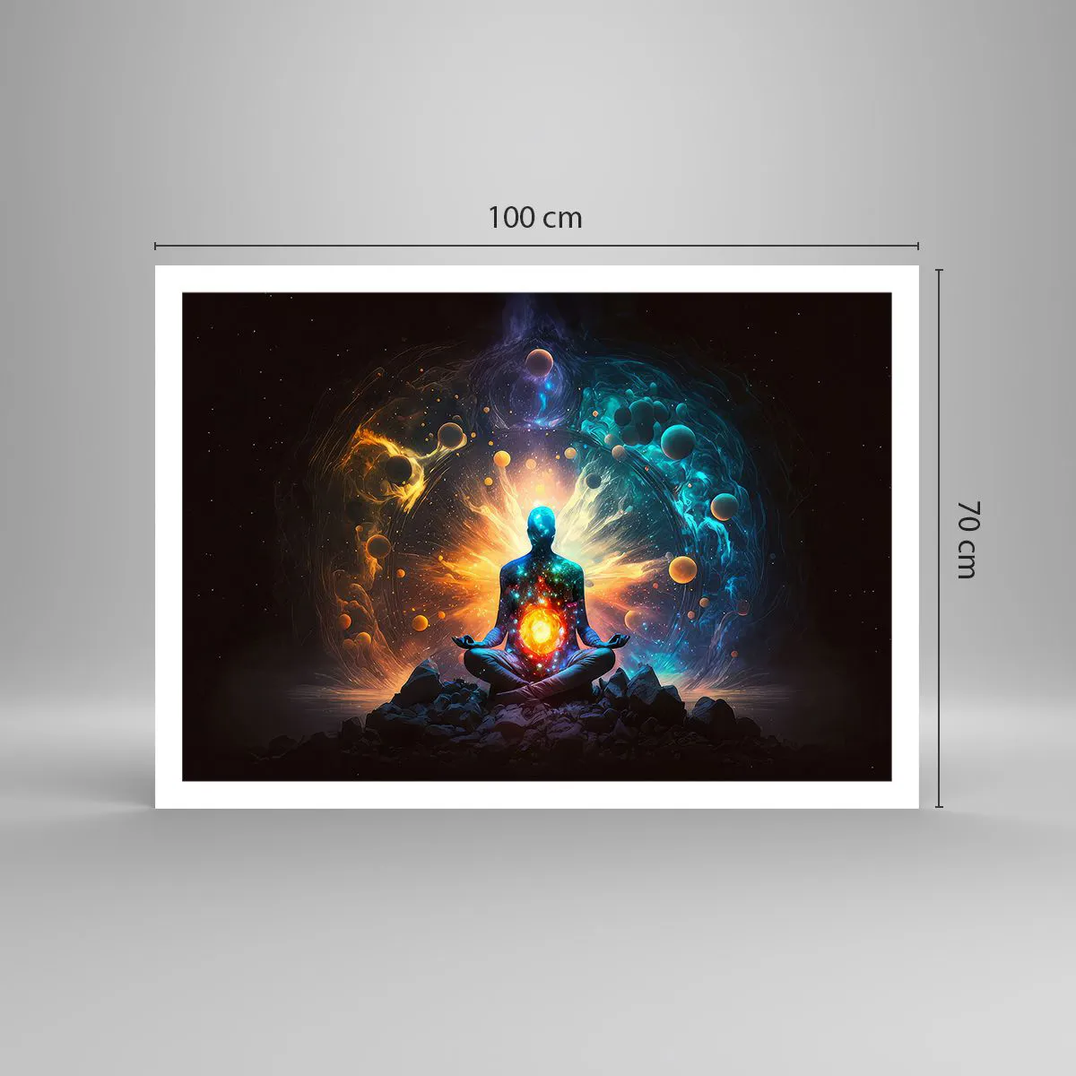 Affiche - Poster - Une figure en méditation entourée d'une aura cosmique - 100x70cm - Paix cosmique - Décoration murale moderne pour le salon et la chambre ARTTOR