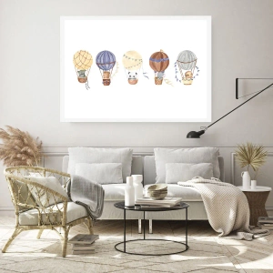 Affiche - Poster - Animaux mignons dans des ballons sur fond blanc dans un style aquarelle - 50x70cm - Compagnons de voyage - Décoration murale moderne pour le salon et la chambre ARTTOR