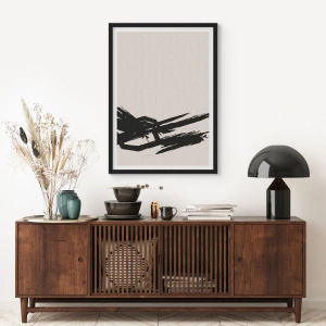 - Cette affiche présente une abstraction dynamique inspirée de coups de pinceau noirs sur fond beige. Son caractère minimaliste et expressif la rend idéale pour les intérieurs modernes. De haute qualité, elle est encadrée dans un cadre noir.