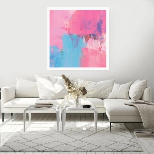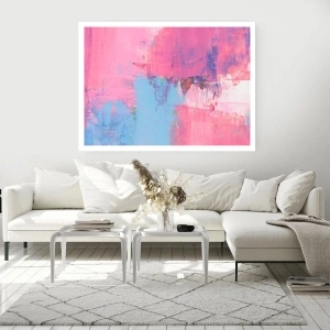 Affiche - Poster - Composition abstraite en rose et bleu - 100x70cm - Du rose, du bleu et une pincée de lumière - Décoration murale moderne pour le salon et la chambre ARTTOR